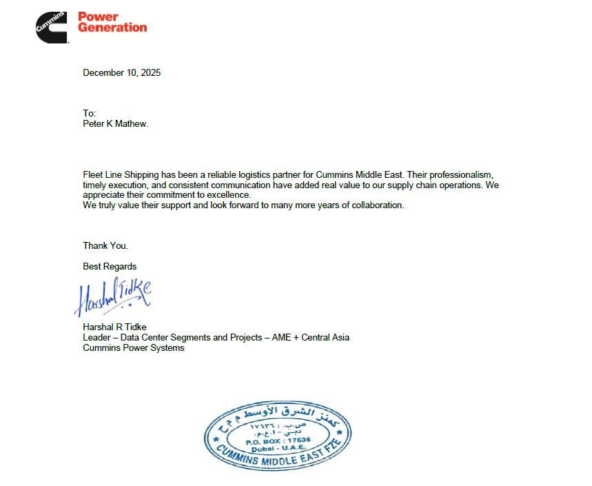 We are proud to have received appreciation from Hunter Buildings International B.V. and Cummins Power Systems, two globally respected organizations. Their recognition reflects our team’s commitment to quality, reliability, and customer-focused solutions. Being acknowledged by industry leaders reinforces our dedication to delivering consistent value and maintaining the highest standards across every engagement. We look forward to strengthening these partnerships and serving our customers with excellence.Cummins Power System Hunter Buildings International B.V.